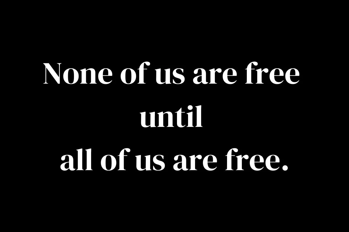 Versions of this quote and sentiment have been attributed to Emma Lazarus, Maya Angelou, Janelle Monae, Lilla Watson and the Aboriginal activists group, Queensland, 1970’s, among many others.