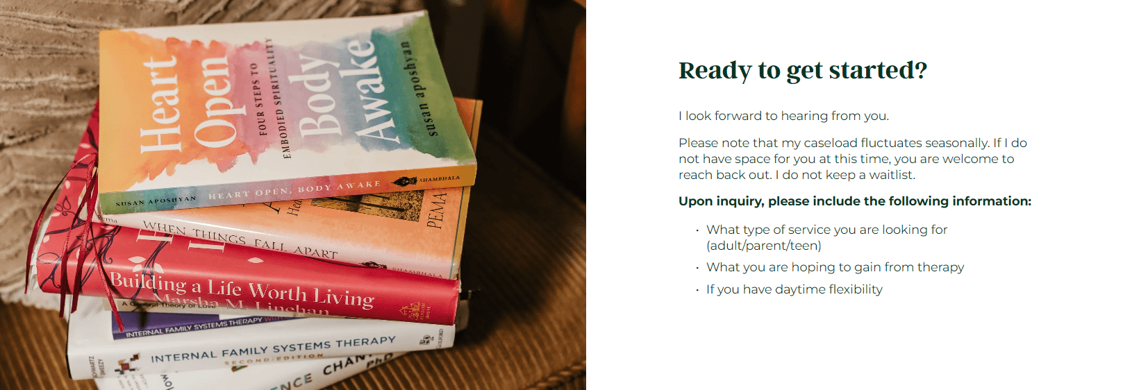 If you’re a therapist ready for your therapist website to be more than just a pretty face—a site that connects deeply, grows your private practice, and attracts the right clients—let’s talk.